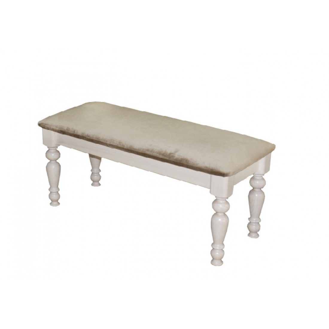 Банкетка в прихожую из массива сосны с мягким длинным сидением. Варианты цвета тонировки - Белый полупрозрачный или Орех темный