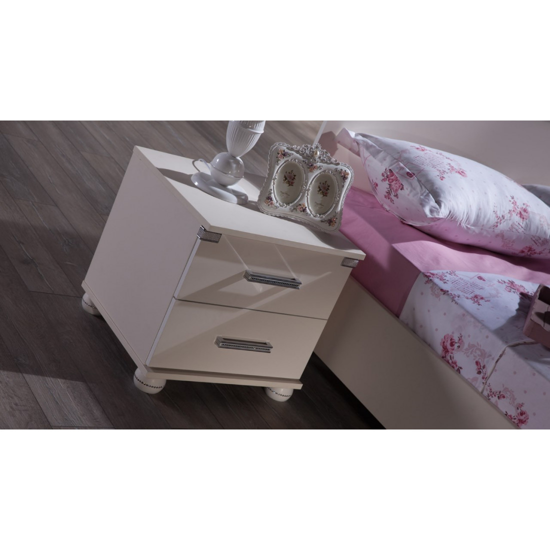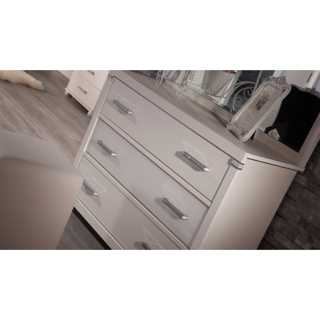 • стразы украшают уголки, ножки, ручки и рисунок;