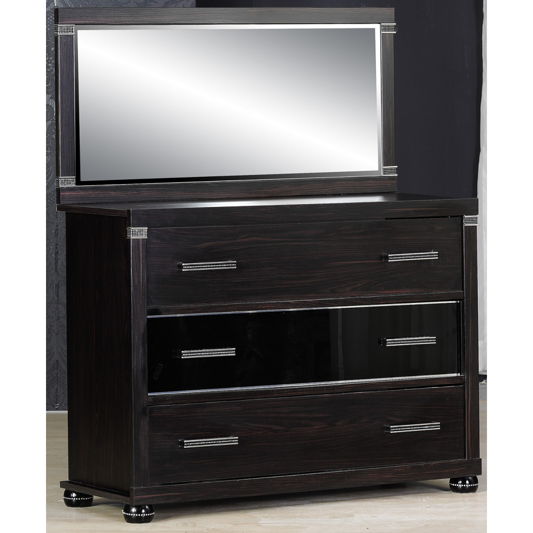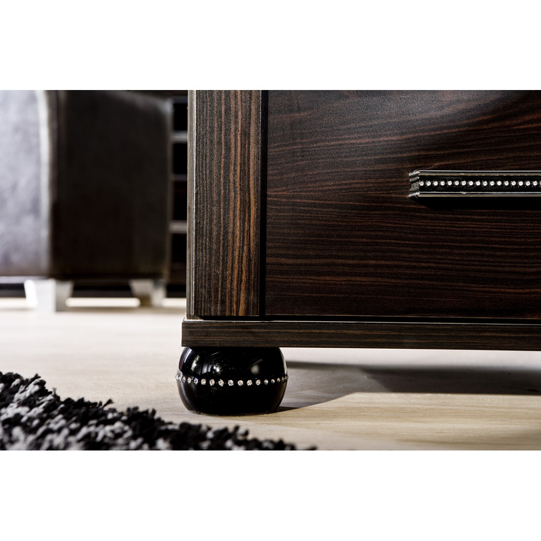Мебель для спальни Мира от Беллона оформлена в изящном современном дизайне, представляющим собой гармоничное сочетание многих популярных интерьерных течений: в нем можно разглядеть утонченность Франции и аристократичность Англии, роскошь Италии и строгость, граничащую с легкостью (особенно это проявляется в белоснежном исполнении спальни) скандинавского стиля. Наибольшую популярность обрела спальня Мира, исполненная в полюбившемся россиянами цвете венге. Благородный темно-шоколадный оттенок с выразительной фактурой органично дополняется декоративными элементами, в которых закреплены настоящие кристаллы Swarovski.