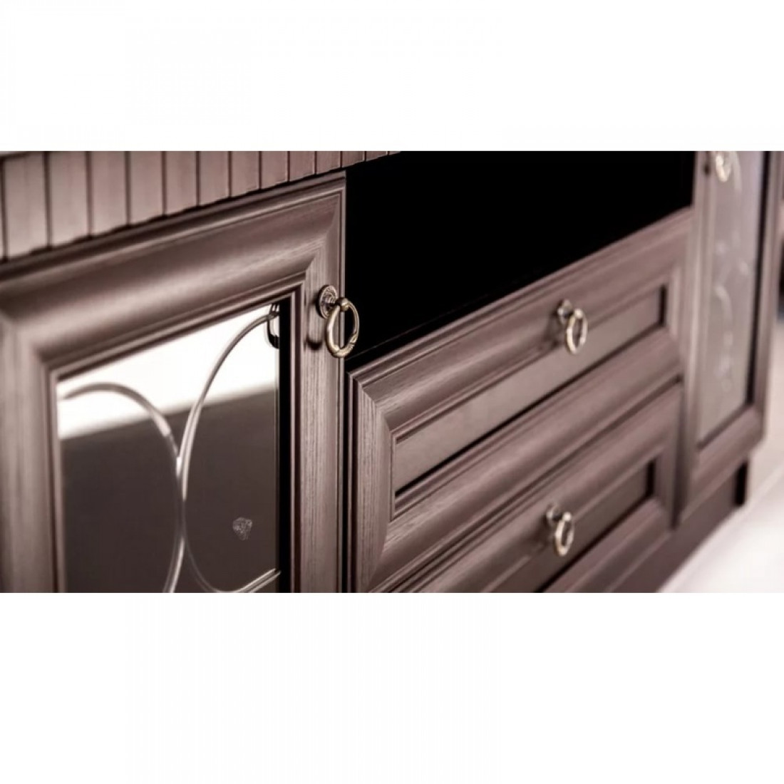 Фасады: МДФ, декор – денвер темный, стекло с гравировкой